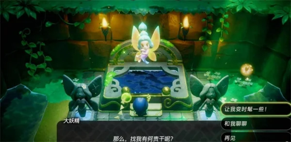 3.在大妖精出现后,与它进行互动,选“让我变时髦一些”,然后花费卢比就可以提升饰品携带上限了。