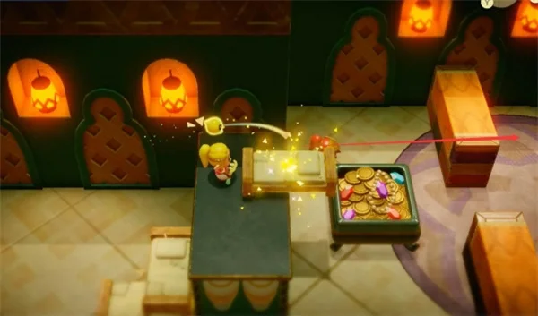3、一路往左进入宝物库,建议直接用床在上方跳过士兵;