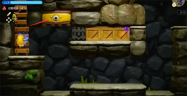3、把箱子打破后从楼梯口下去,拉着石头去踩机关然后从楼梯回来往左边走;