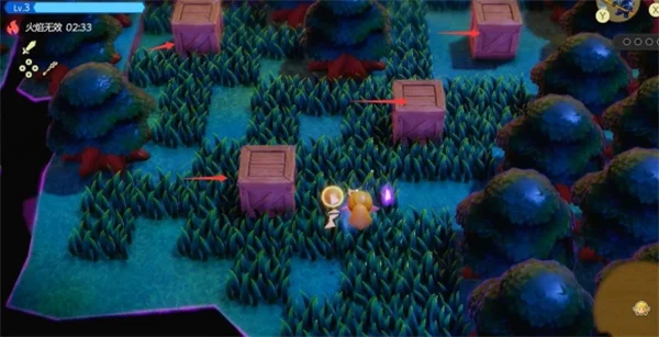 4、继续清箱子然后从楼梯下去清怪,清完回来继续往左走,把挡路的石头拉远;