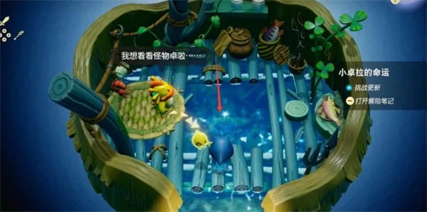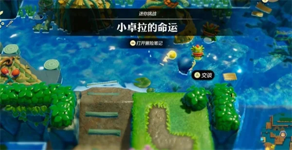 1、前往 【河卓拉领地】 ,找图示位置的NPC对话触发迷你挑战【小卓拉的命运】;
