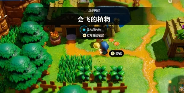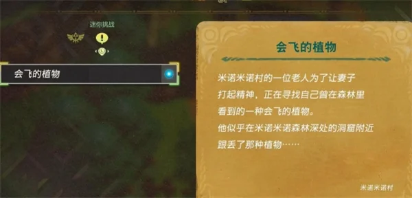 1、前往【米诺米诺村】找到图示位置处的NPC触发迷你挑战【会飞的植物】;