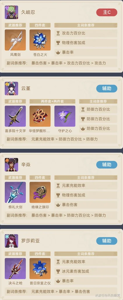 云堇加强久岐忍的普攻物伤,2命增伤,6命提攻速。