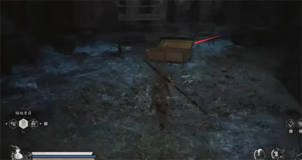 2、下坡后往左边走,在路的尽头有一个宝箱;