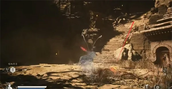 3、传送到【挟魂崖】-【枕石坪】,往前面走上楼梯开门;