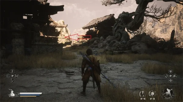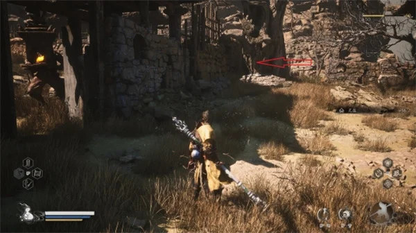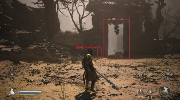 2. 然后到传送点黄风阵-定风庄处,在这个传送点往来时的院子里走,进入院子后左转到场地中央摇响第一次拨浪鼓。