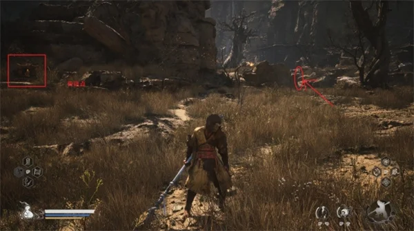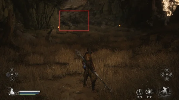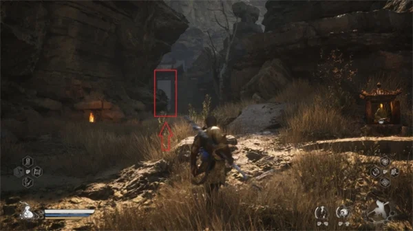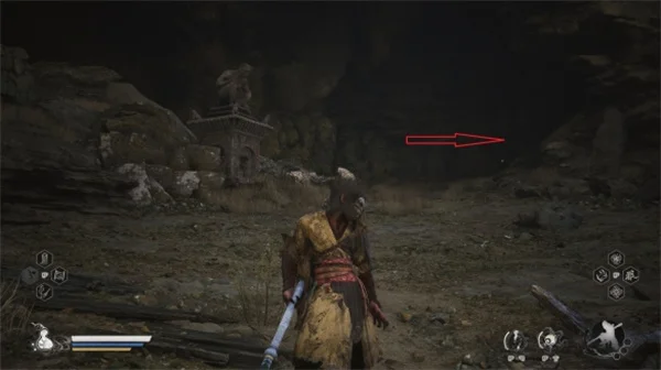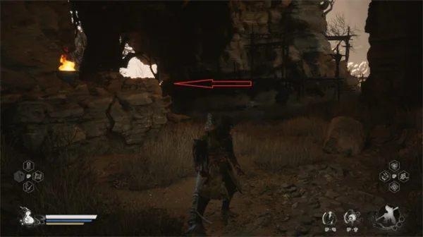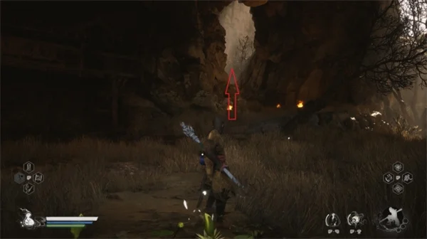 1. 首先玩家到传送点挟魂崖-藏风山凹处,从下图箭头的位置沿着沟底走到头可以遇到npc石中人,他说他被困住了,让玩家去一旁的山洞处干掉石母拿到精魄。