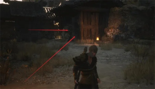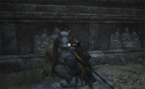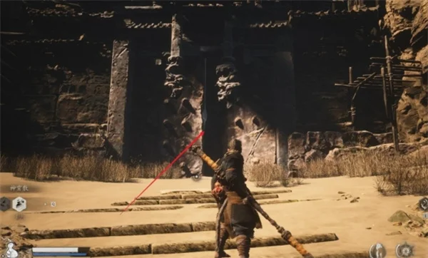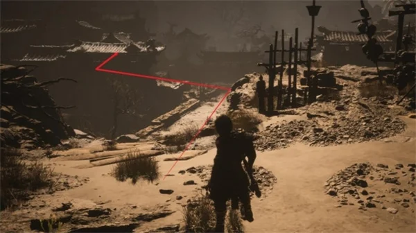 3. 最后回到挟魂崖-枕石坪,可以在他原来位置的右侧山坡上看到他,身上有金片就会触发战斗(金片是击败boss沙大郎获得的物品),击败他后进入大门。