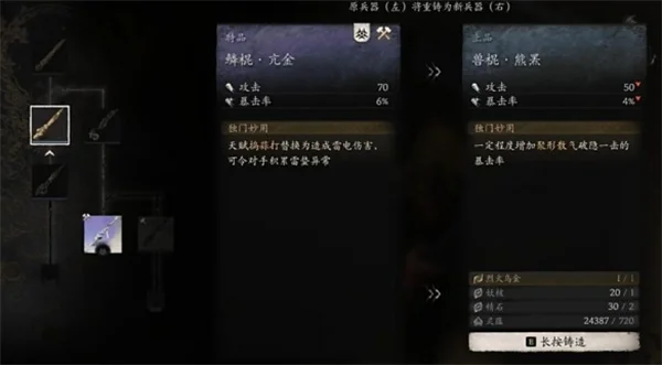 3、游戏当中每一个武器都可以去铸造,第二次铸造相同的武器会消耗少一点的材料。