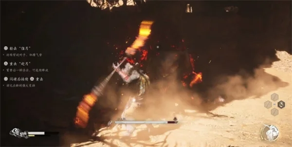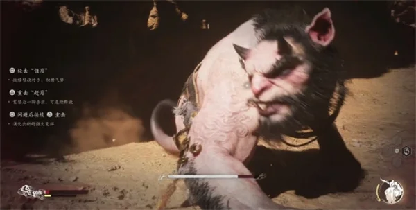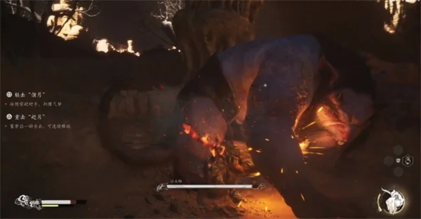2、沙大郎没有武器,他只用爪子和啃咬的原始方式攻击我们,翻滚闪避后可以重棍识破。