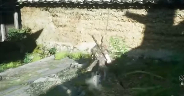 3、然后我们往洞口走,也就是打二姐的地方,可以看见屋子旁边有一个大树,在大树旁边还有一个,靠近采集即可。