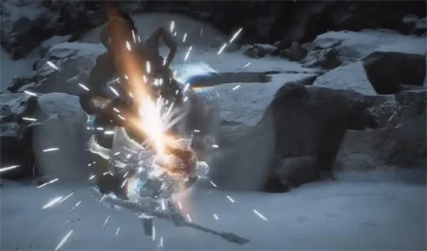 1、首先我们选择劈棍,在前往boss面前进行三蓄,使用一个重击。