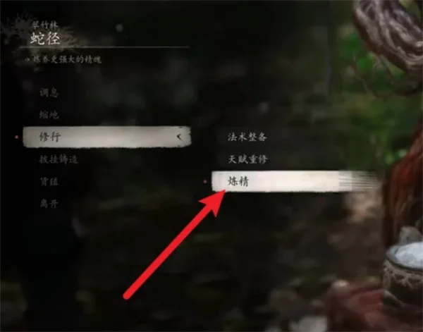 2. 玩家 先进入土地庙界面,然后点击修行,再点击炼精 。