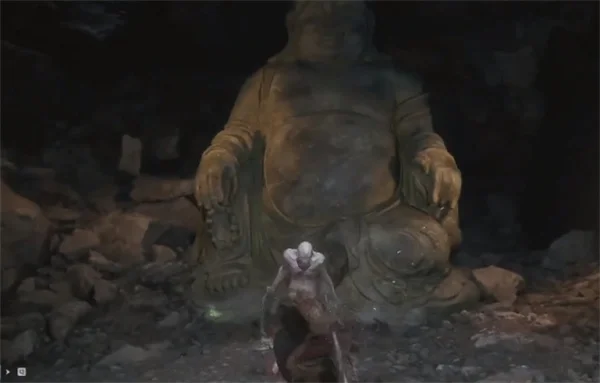 2、继续往左边走,跳下台阶,找到第二个佛像。