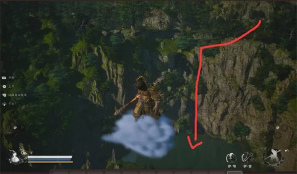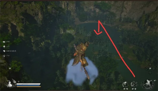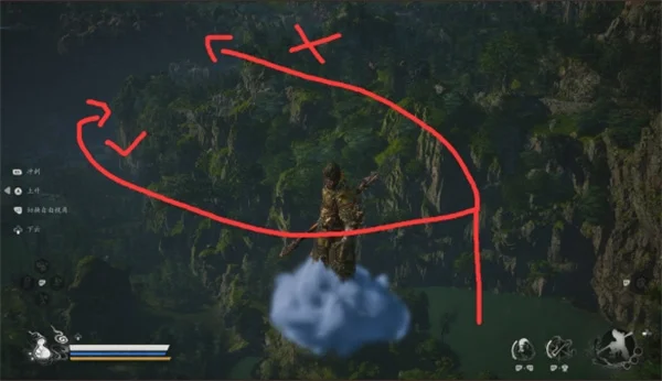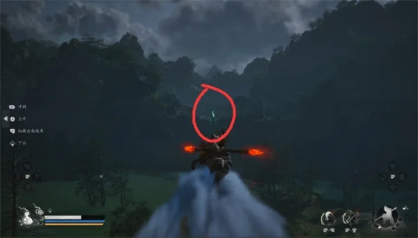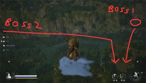 从第一个BOSS的水面起飞,注意要低空绕山飞行,不然容易出剧情战斗。