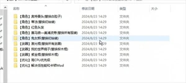 1、首先我们将下载好的MOD压缩包进行解压,解压完毕后,我们点开文件夹,就可以看见各种以其他IP的角色命名的人物模型MOD。