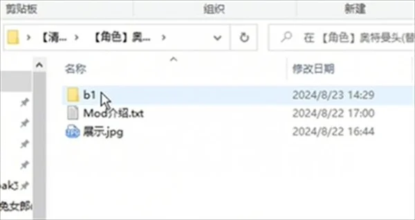 4、此时我们在刚开始打开的文件夹里随便挑选一款MOD,例如第一个奥特曼头盔,点进去可以看到一个名为“b1”的文件夹,我们直接把该文件夹复制到黑神话悟空的根目录的空白处即可。