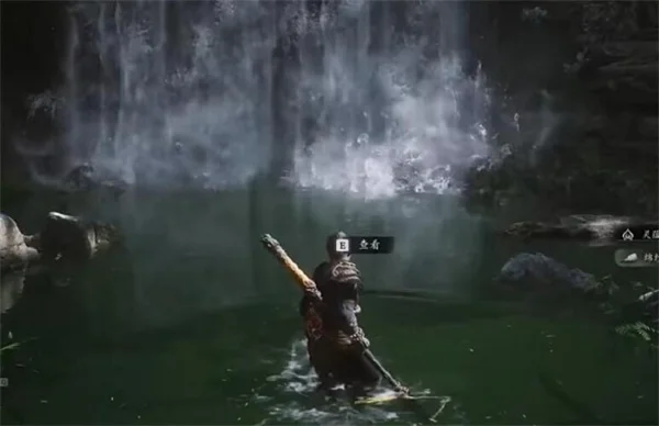 3、沿着旁边的小路走,然后左转找到瀑布,点击查看触发对话;