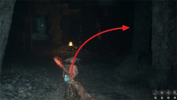 4、进入洞后往火盆右转,如下图有个洞口,从这边出去。