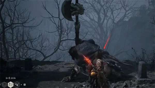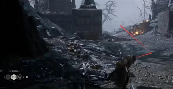 1、首先玩家要前往【灰烬岭】-【火燎一关】往箭头方向走找到【皓斧力士】并击败它;