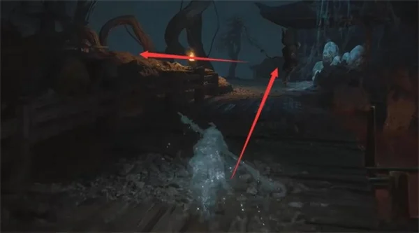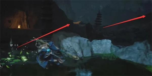 在盘丝洞堕龙壁这里向土地庙的后方走。