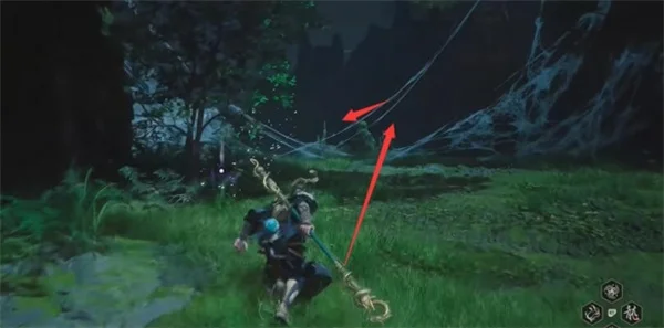 3、然后穿过旁边的蜘蛛窝直接走到对面去。