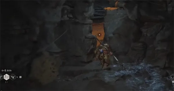 1、从【盘丝洞】-【底层】出发,往前直走,然后左拐从缝隙中出去;