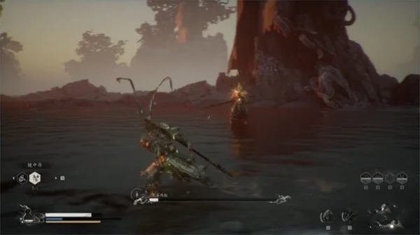 大圣会使用我们所有的技能,它的立棍式比我们的杆子还要长的多,攻击距离也是,我们要往左右闪避,不要盲目靠近,立棍式劈下来后还有两下棍击要小心。