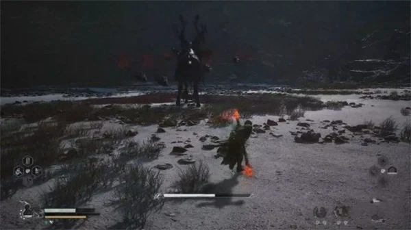 此为一阶段的普通攻击,用鹿头上的角攻击,并且会产生旋风,或者用前足砸地,这两招没什么好讲的,往身边或身后就很好躲。