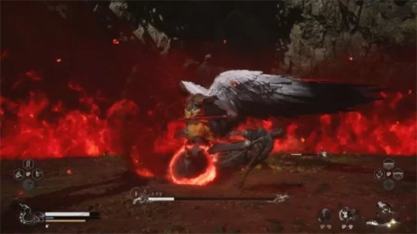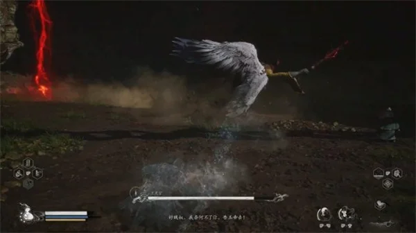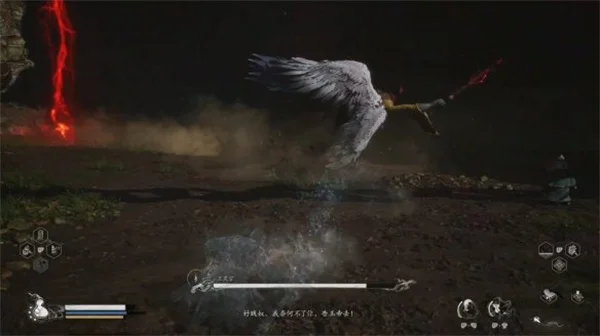 翅膀挥动的快速打击,但要注意我们攻击时打到羽毛位置,他能够使用金身弹掉我们的攻击,需要等到他羽毛张开后再攻击即可。