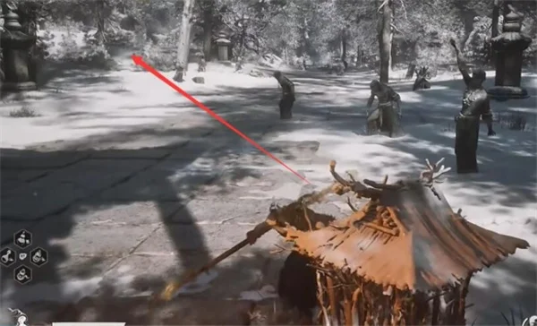 玩家需要在土地庙的这个方向走就可以看到一个倒着的大树,这个就是。