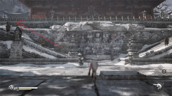 2. 位置在小雷音寺最左侧的偏殿的殿中央,玩家先到 小雷音寺-寺门 传送点,穿过前面的天王殿后,出门往前从左边楼梯上去后右转。