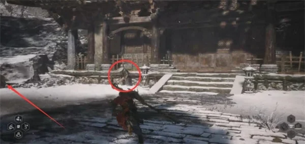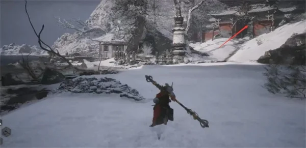 1、来到【小西天】-【苦海北岸】,然后往左边走进入庙门;