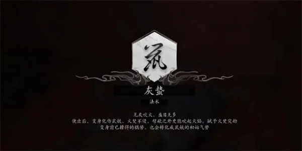 在动作角色扮演游戏黑神话悟空中,玩家可以获取到许多的法术,其中有一个法术为灰蛰,部分玩家不知道怎么获取,下面就为大家带来黑神话悟空中法术灰蛰的获取方法,有需要的玩家可以参考。