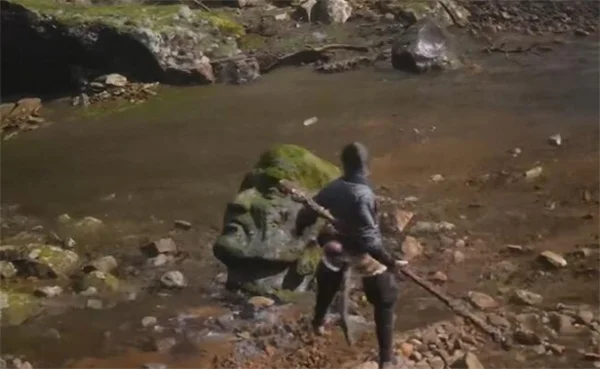 2、接下来可以沿着河流一直向前面走,最终可以在人头石头这里找到。
