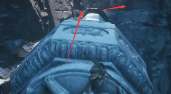 3、来到大坑这里逐渐的向下面跳下去。