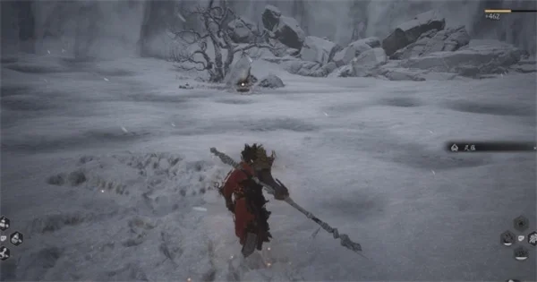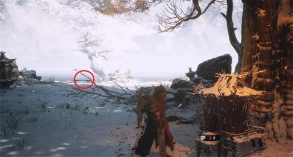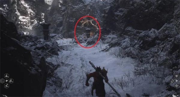 4.击败触手怪继续往冰瀑下方的枯树处走,即可看到蒲团。