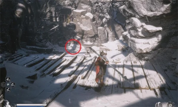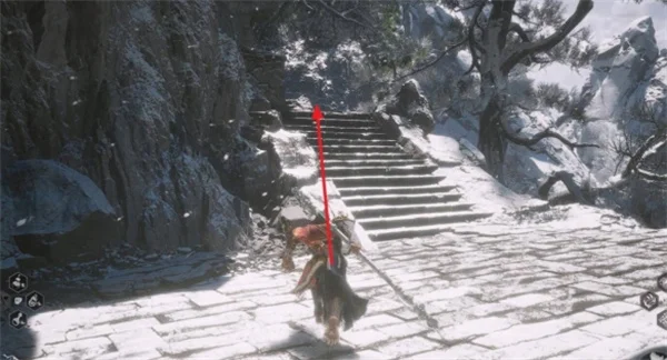 2.进入洞后,沿着唯一的路一直往前走(会穿过许多山洞),直到走到下雪的室外,看到悬崖后,走楼梯往上。