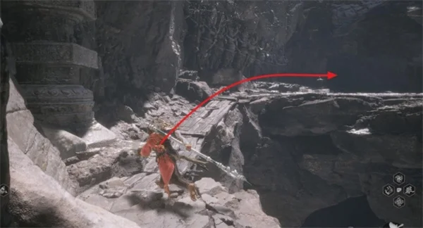 1.从极乐谷-一念壁篝火出发,沿着山壁和木板到达前方平台,平台上会遇到BOSS不白。在它旁边有个山洞,进入山洞。