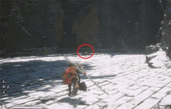 3.继续沿着路前进,到达前方被岩壁包围的区域,这里触发第二次与不白的BOSS战,蒲团就在战斗区域中靠近岩壁的地方。