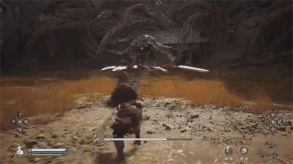 比一阶段的羽毛厉害多了。有两种羽毛攻击方式,普通的为为张开翅膀竖起羽毛,然后飞出两次羽毛。第二种前摇为吼叫一声,射出羽毛然后再飞向空中再射出一次羽毛。此技能可以不用闪避,用棍花棍舞就可以挡掉。但要注意空中飞下来的时候下落也有伤害。