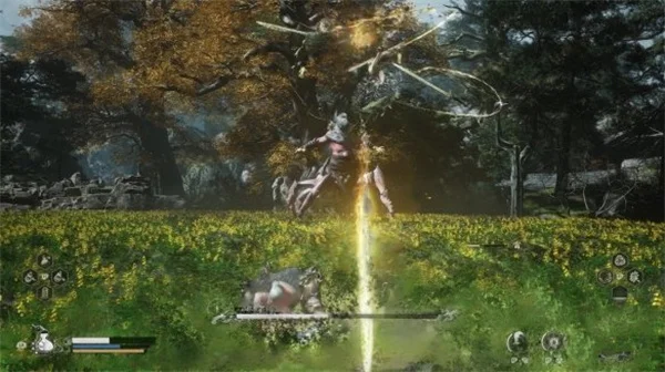 距离稍远时会御剑插在地上二段伤害为雷击,此招注意躲掉了物理攻击后还有一段雷击要注意。