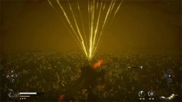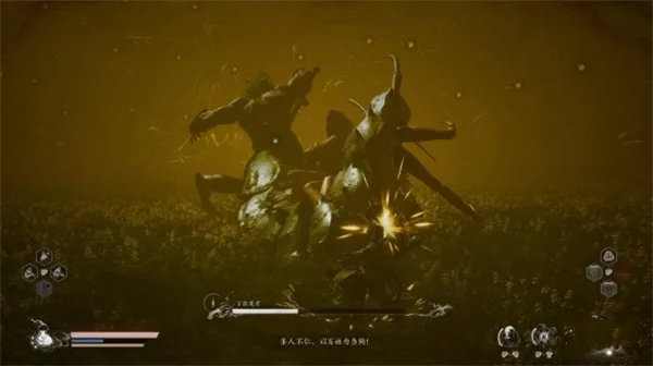 百眼毒君血量在60%左右时会使用新招式,潜入地底伺机而动攻击玩家,分为三次钻地。第一次潜入地中后,攻击的前兆为周围冒出电光,如果中招就会吃到投技巧。