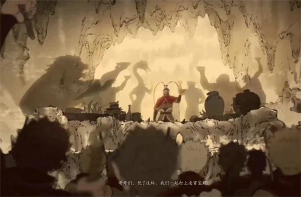 1、老猴子给天命人和猪八戒引路,小船游荡在孙悟空的回忆河。当年悟空杀妻证道,却还是放不下情思。西天取经归来,还是想要抛弃佛身,到花果山跟白骨精再续前缘。老猴子和猪八戒应和,大妖怪陨落都是因为世道不公。老猴子称赞猪八戒,取经回来还是普通人,只有帮天命人集齐六根才是真正的磨炼。