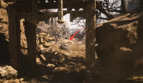 2、随后玩家如果还没打过石先锋,就可以在石先锋的战斗场地,找到下图所示的石头,提交六个佛珠召唤石敢当。