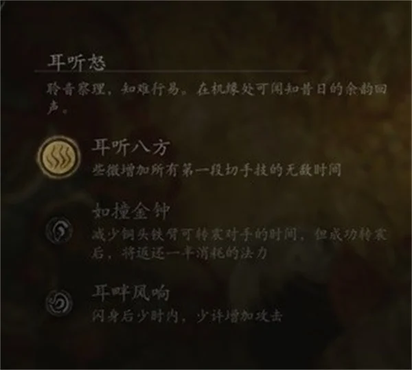 在动作角色扮演游戏黑神话悟空中根器耳听怒有许多增益效果,玩家可以进行自主选择。部分玩家不知道都有那些效果以及应该怎么选择,下面就为大家带来黑神话悟空中根器耳听怒的推荐选择及效果一览。