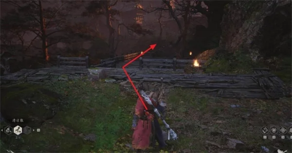 3.走过木桥后按照箭头往前走走,在山边缘凸出的木板下方就可以找到狼刺客,将其斩杀就能获取它的精魄。