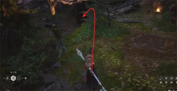 1.从第一回的黑风洞洞外的土地庙开始走,沿右边路上山,如下图的标示。