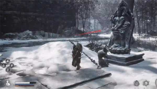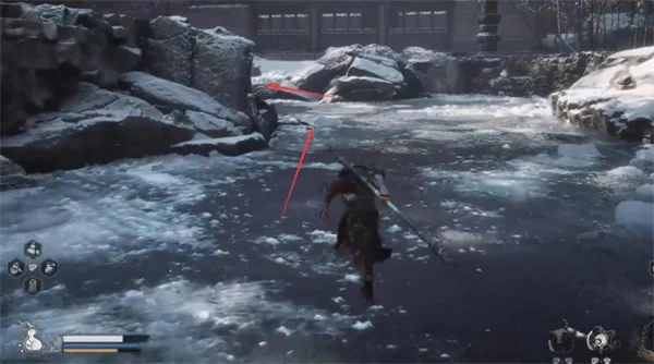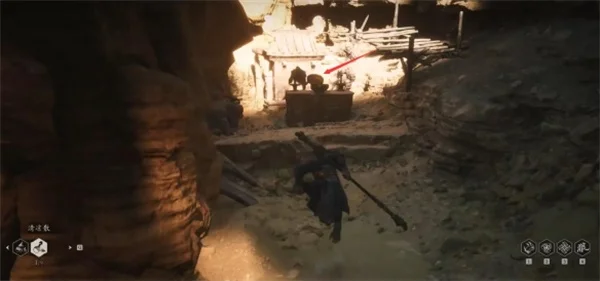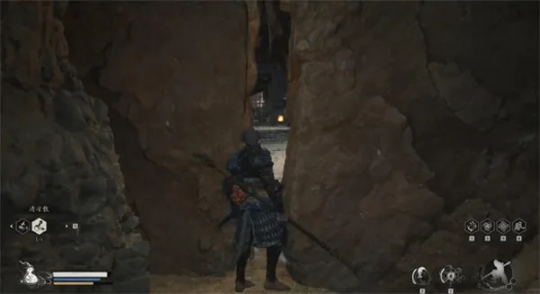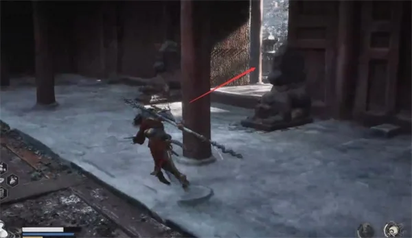 3、右拐,注意坡上面有个小怪,往里面走 钻过缝隙 ,破开木门继续往前走;