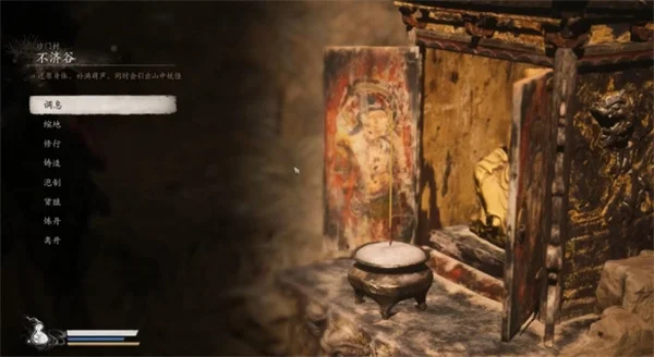 4、右边暗处会有小怪跳出来偷袭,绕过石壁,在光线交界处有一个桌子,打开金炉获得第二颗【九转金丹】。